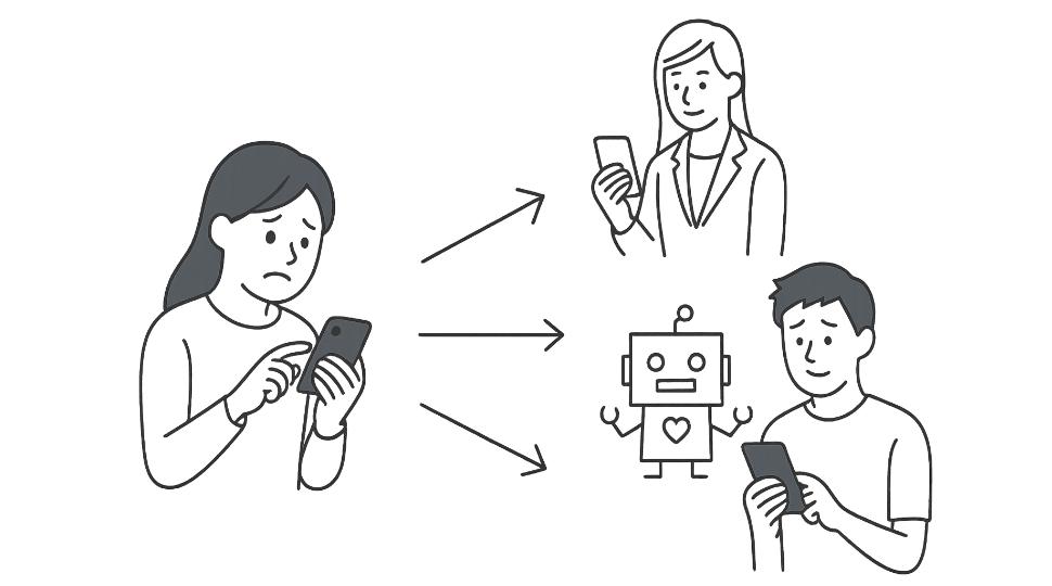 テキスト形式で悩み相談ができるコミュニティを運営。掲示板とメールを組み合わせた相談機能と、ボランティア相談員やAIを活用した形態により、気軽に悩みを相談できる仕組みを提供。